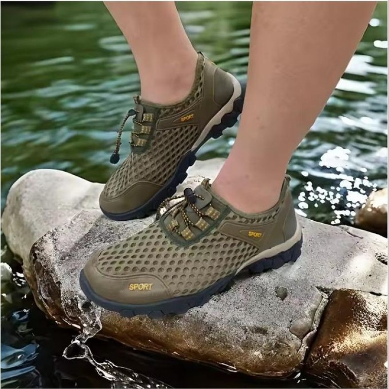 Men's Breathable Mesh Sneakers Casual Outdoor Shoes- Green